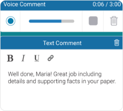 迅速的反馈利用预先设置或可自定义的拖放评语节省时间。在贵学院内共享可重复使用的评语库,让评估更为一致。